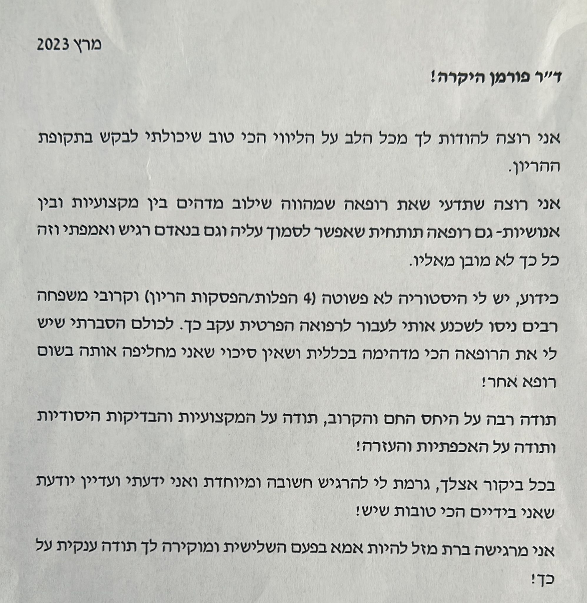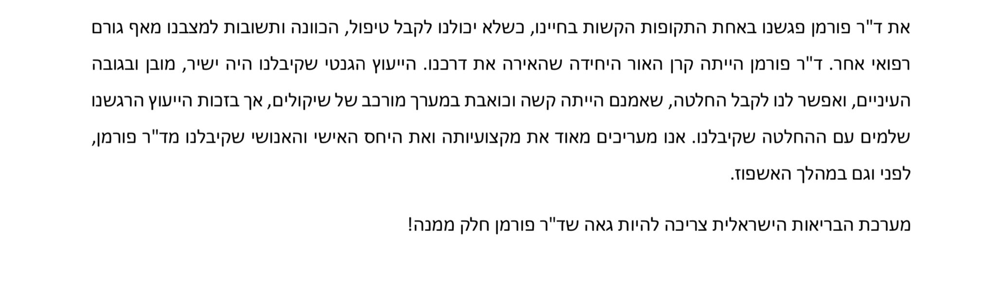 ד"ר פורמן היקרה,